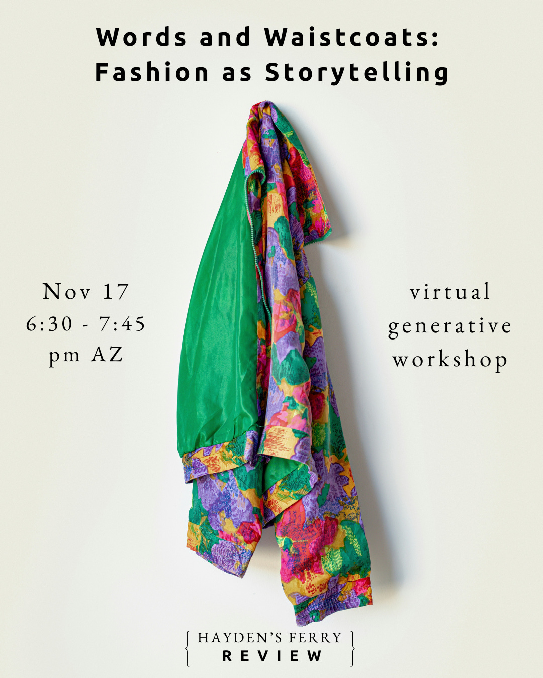 Clothing tells stories about who we are. This virtual generative workshop explores how fashion—through texture, color, and sound—can express character and deepen storytelling. Join us to write through the senses and reimagine fashion as narrative art with Ashley Cameron & Gladys Anette Sanchez Padilla.